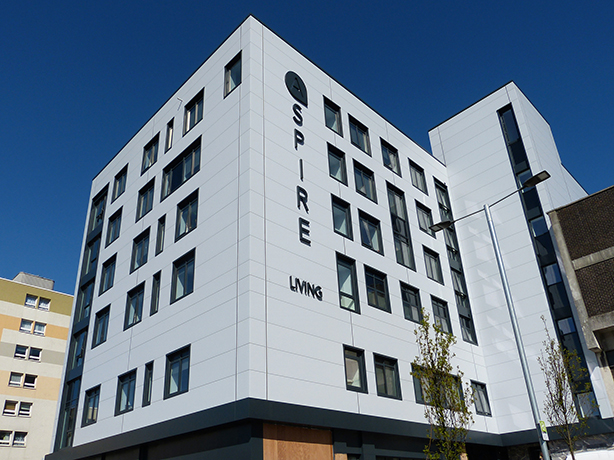 Aspire House is the publicly acclaimed conversion and extension of an existing derelict commercial building in the centre of Plymouth which was transformed into the highest standard of student accommodation available in the city.